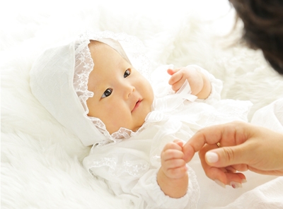 アルバムでしっかり残したいお客様にオススメ! たくさん撮影した中からカットを厳選して デザイナーが1冊1冊レイアウト 白を基調としたシンプルなデザインで スタジオ&ベビーの雰囲気にピッタリ