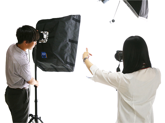 どうすればお客様の魅力を最大限に引き出せるかを考え、お顔の向き、ライティング、シーンなどをデザインしながら撮影しています。