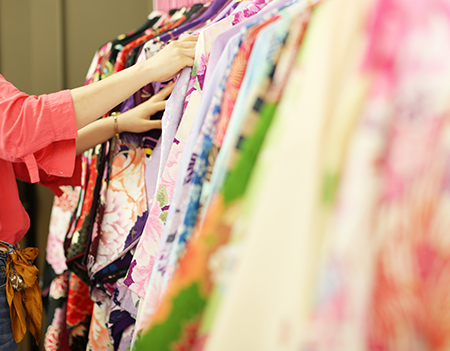 おしゃれな卒業袴のレンタルを行っており、スタジオにて試着会などのイベントも開催しています。着物袴のコーディネートのアドバイスなども行っておりますので、お気軽にスタッフまでお声がけください。