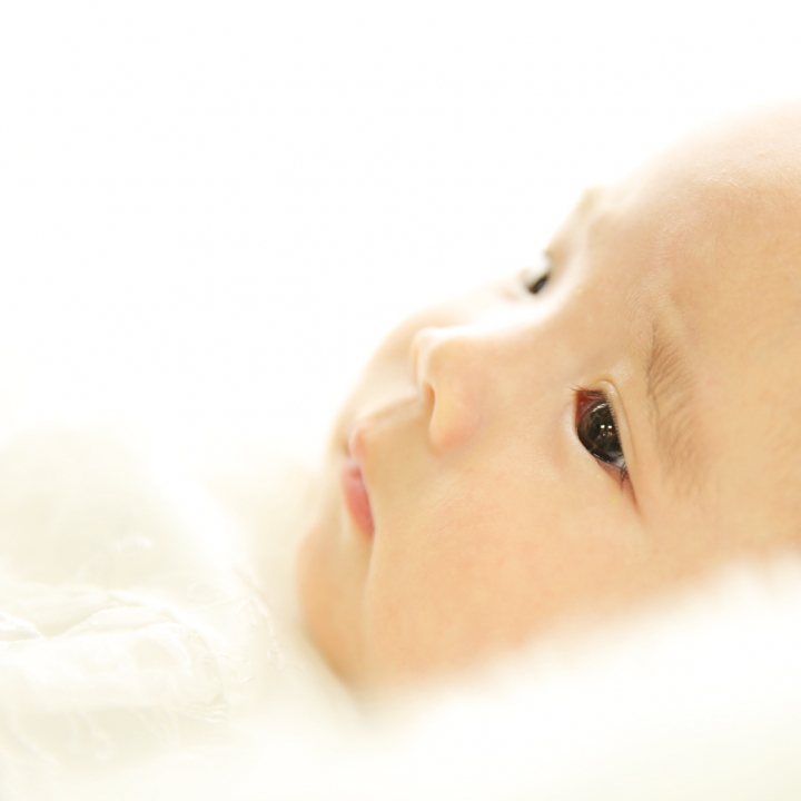 お宮参りではめずらしい笑顔 月齢を重ねると笑顔が増えます