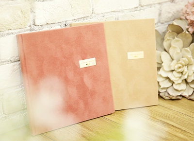 他ではあまりないスエード調の上品な正方形のアルバムで、